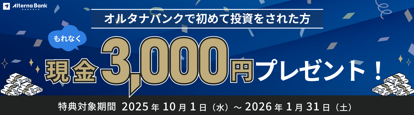 - オルタナバンク、または旧SAMURAI FUNDで既にご投資経験のある方は、本キャンペーンの対象外となります。