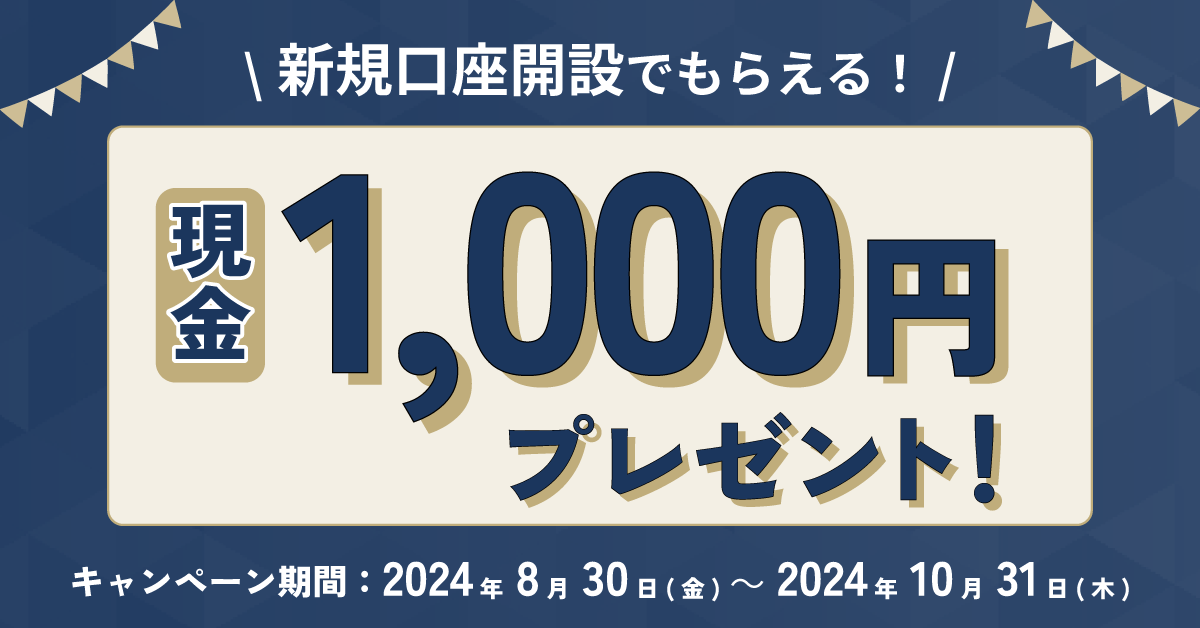 【こちらのキャンペーンは終了しました】新規口座開設でもらえる!現金1,000円プレゼント