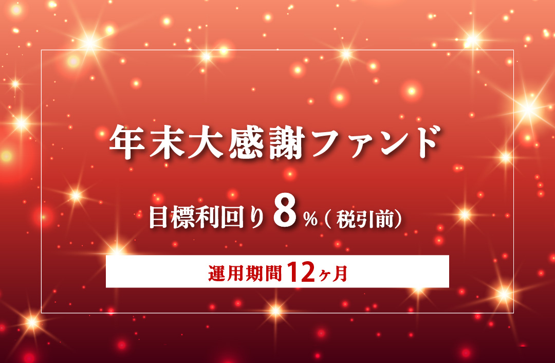 当社が運営するオルタナティブ投資プラットフォーム「オルタナバンク」におきまして、本日、『【毎月分配】年末大感謝ファンドPart1ID973』を公開いたしましたのでお知らせいたします。
