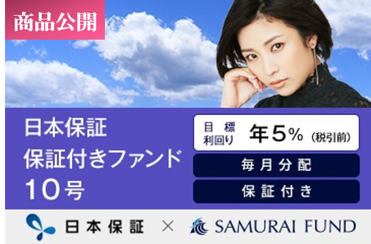 当社が運営する資産運用プラットフォーム「SAMURAI FUND」におきまして、本日、株式会社日本保証とのタイアップによる新商品、『【利回り5% × 毎月分配】日本保証 保証付きファンド10号』を公開いたしましたのでお知らせいたします。
