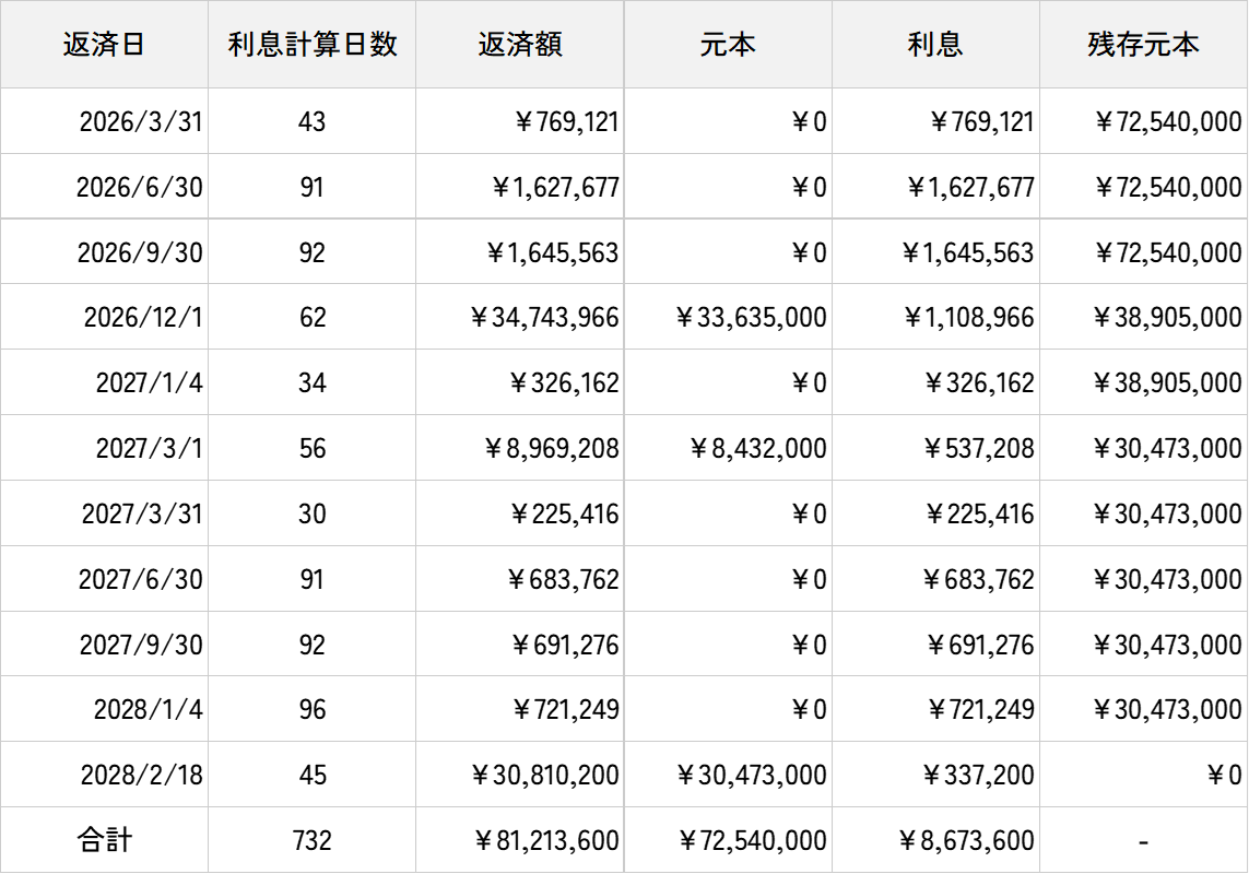 本件貸付にかかる営業者と貸付先の貸付期間は2026年2月16日から2028年2月18日となっております。