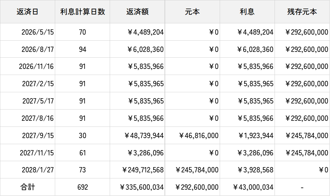 本ファンドは運用期間中、営業者に対して貸付先から貸付金の元本を分割して返済されることが予定されています。したがって当初元本に対する最終利回りは異なります。