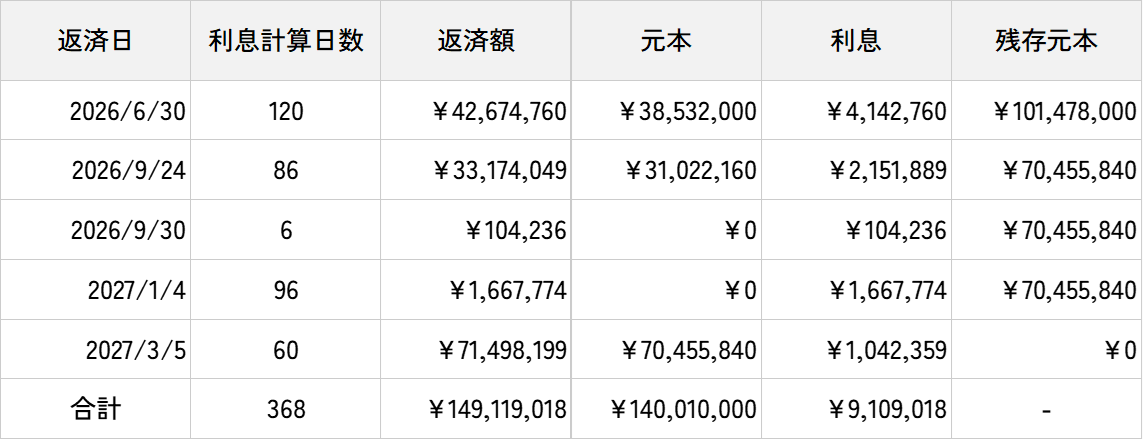 本件貸付にかかる営業者と貸付先の貸付期間は2026年3月2日から2027年3月5日となっております。