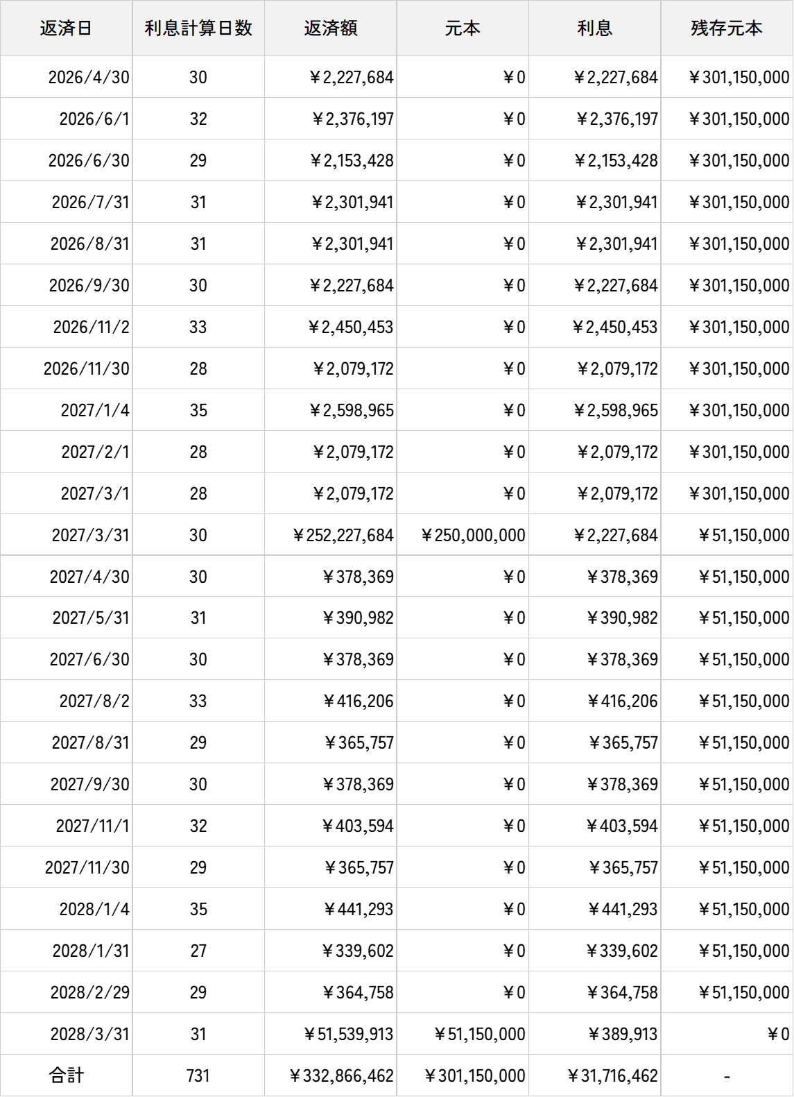 - ※返済日(返済日が土日祝日の場合は翌営業日)を基準に月ごとに金利の計算を行っているため、誤差が生じる場合がございます。