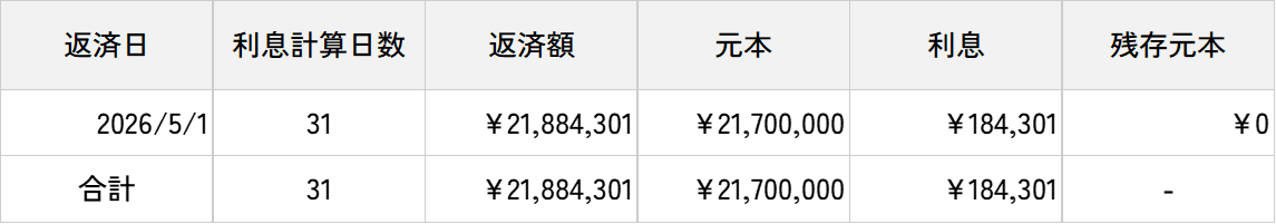 - ※返済日(返済日が土日祝日の場合は翌営業日)を基準に月ごとに金利の計算を行っているため、誤差が生じる場合がございます。