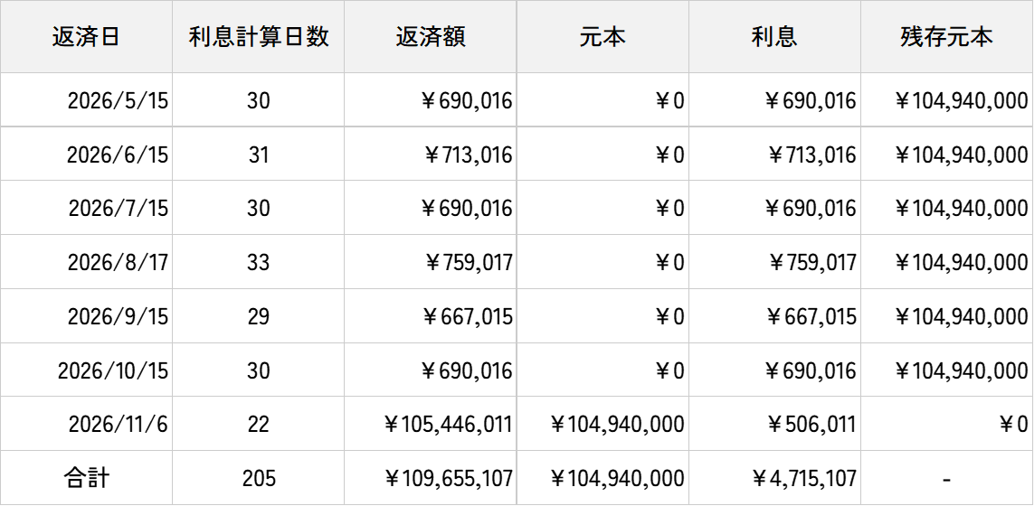- ※返済日(返済日が土日祝日の場合は翌営業日)を基準に月ごとに金利の計算を行っているため、誤差が生じる場合がございます。
