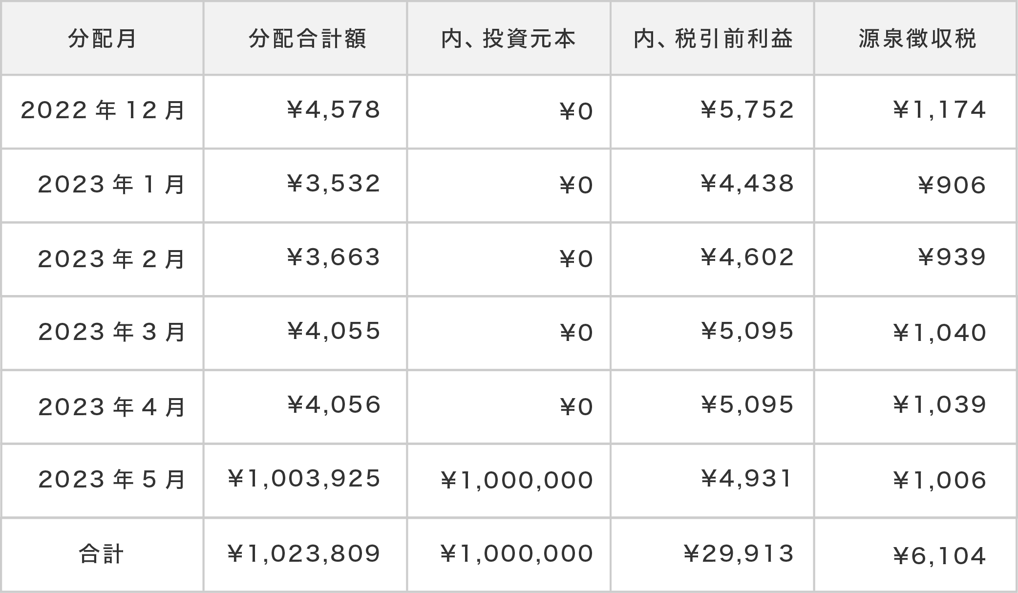 ※上記数値は目標利回り(年利)から計算した参考数値となり、実際は異なる可能性がございます。また、源泉税については当ファンドの公開時点のもので将来変更される可能性がございます。