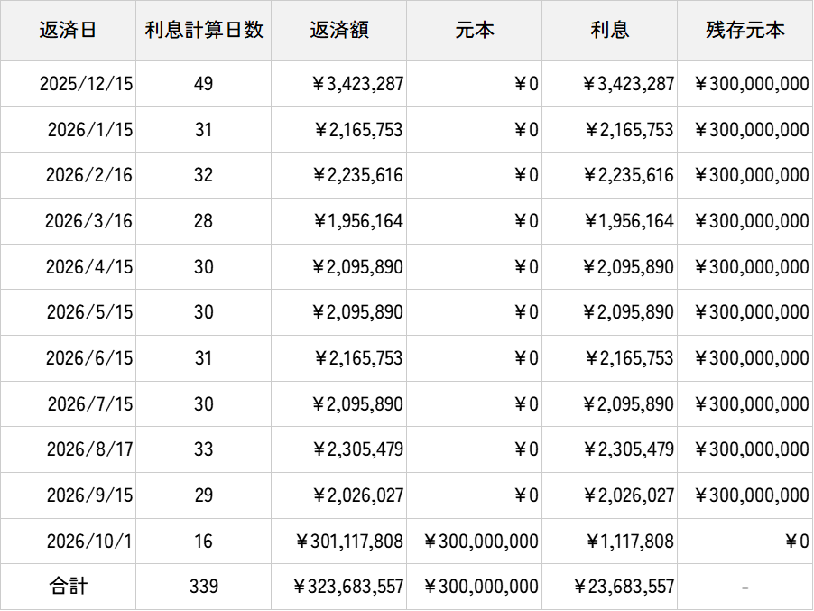 - ※返済日(返済日が土日祝日の場合は翌営業日)を基準に月ごとに金利の計算を行っているため、誤差が生じる場合がございます。