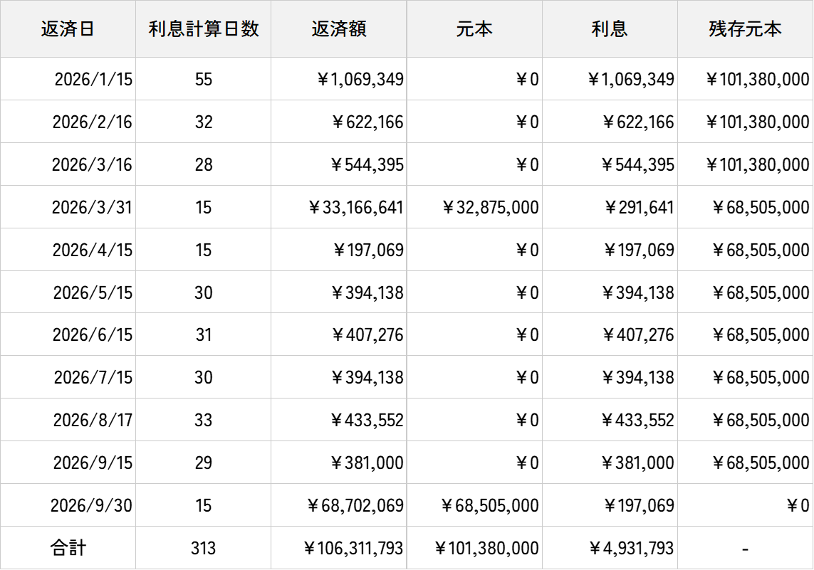 - ※返済日(返済日が土日祝日の場合は翌営業日)を基準に月ごとに金利の計算を行っているため、誤差が生じる場合がございます。