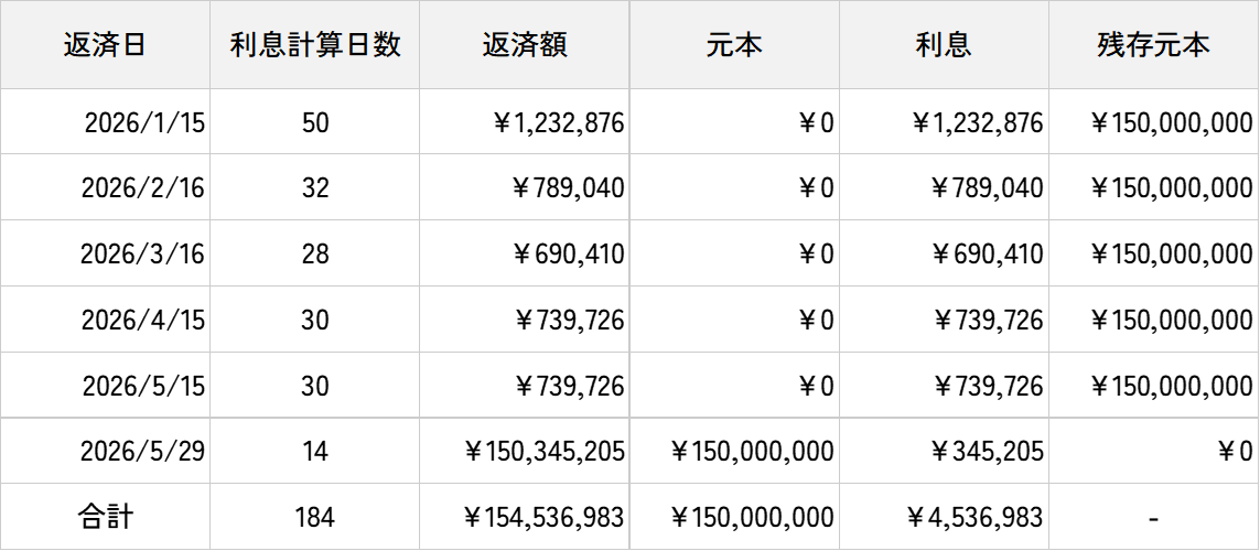 本件貸付にかかる営業者と貸付先の貸付期間は2025年11月26日から2026年5月29日となっております。