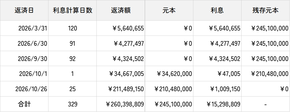 本件貸付にかかる営業者と貸付先の貸付期間は2025年12月1日から2026年10月26日となっております。