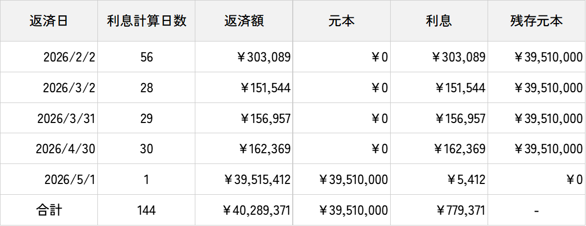 - ※返済日(返済日が土日祝日の場合は翌営業日)を基準に月ごとに金利の計算を行っているため、誤差が生じる場合がございます。