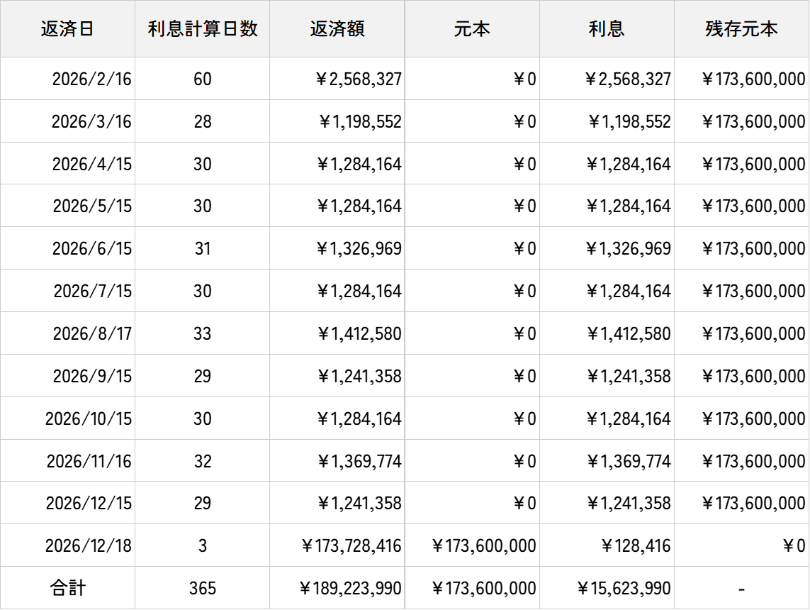 本件貸付にかかる営業者と貸付先の貸付期間は2025年12月18日から2026年12月18日となっております。