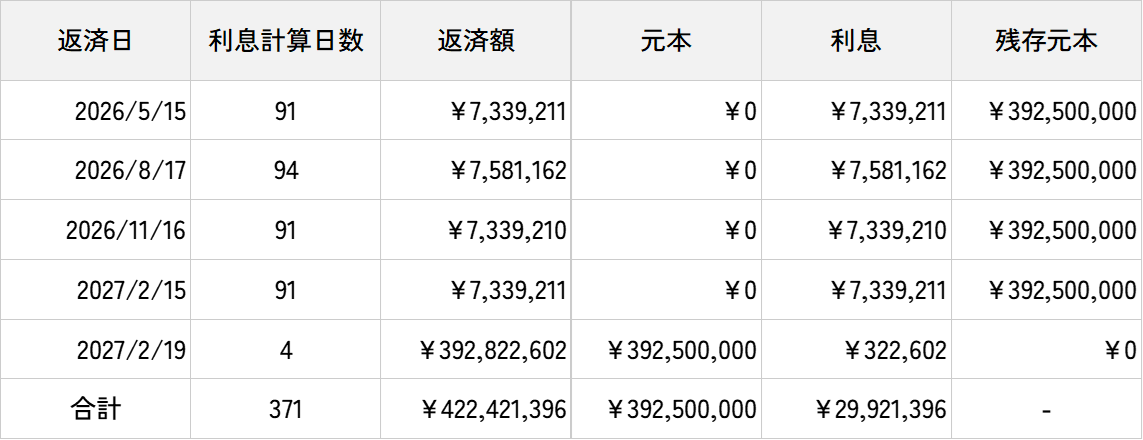 - ※返済日(返済日が土日祝日の場合は翌営業日)を基準に月ごとに金利の計算を行っているため、誤差が生じる場合がございます。